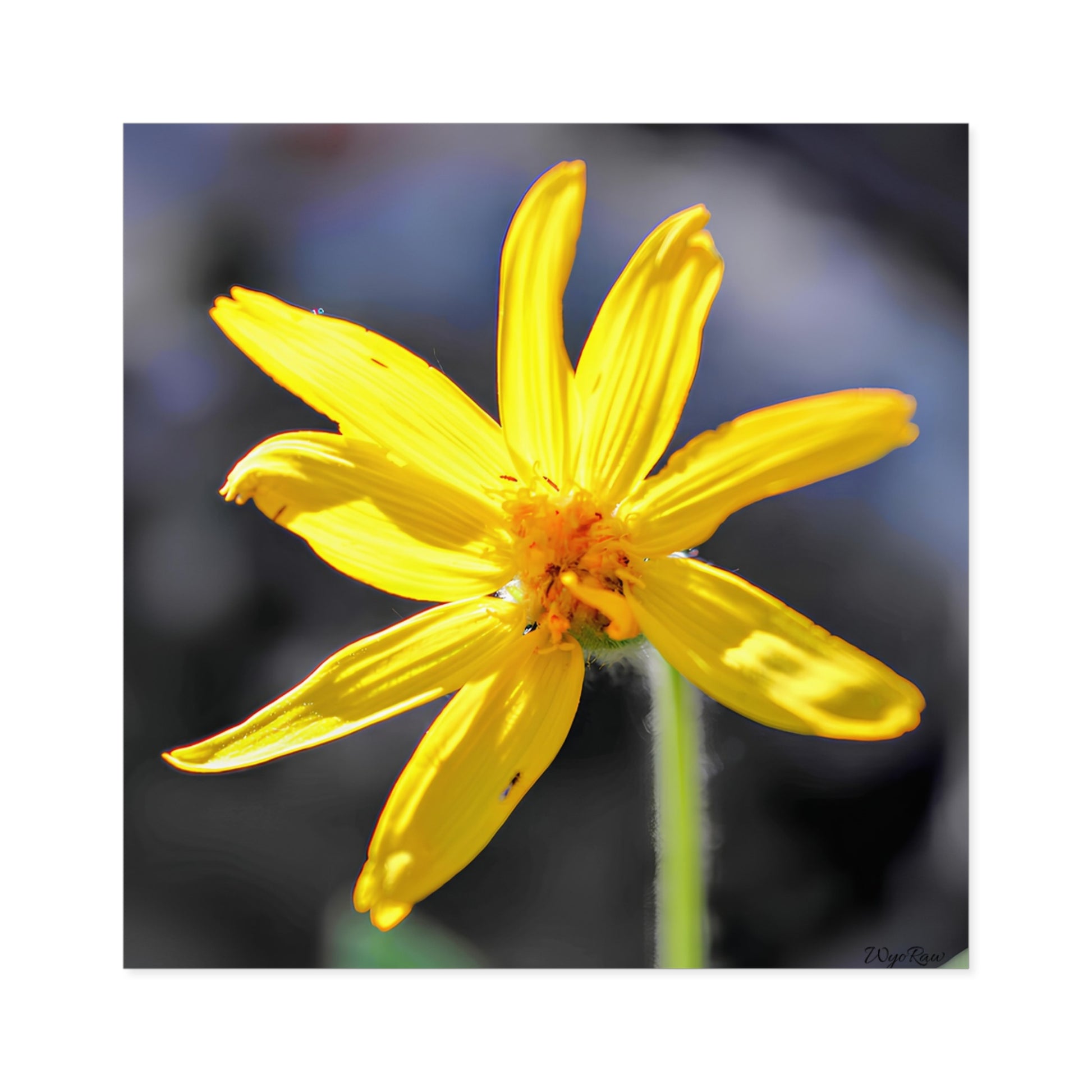 A single square vinyl sticker that captures a bright, sunlit yellow wildflower in crisp photographic detail. The vivid petals pop against a softly blurred background, bringing a touch of meadow light to laptops, water bottles, journals, or bike helmets. Made to last, the image stays sharp through daily wear — rain, scratches, and bright sunlight won’t dull its color. This sticker feels like a small, cheerful pause in a busy day: place it where you want a reminder of warm afternoons, simple blooms, and quiet outdoor moments.